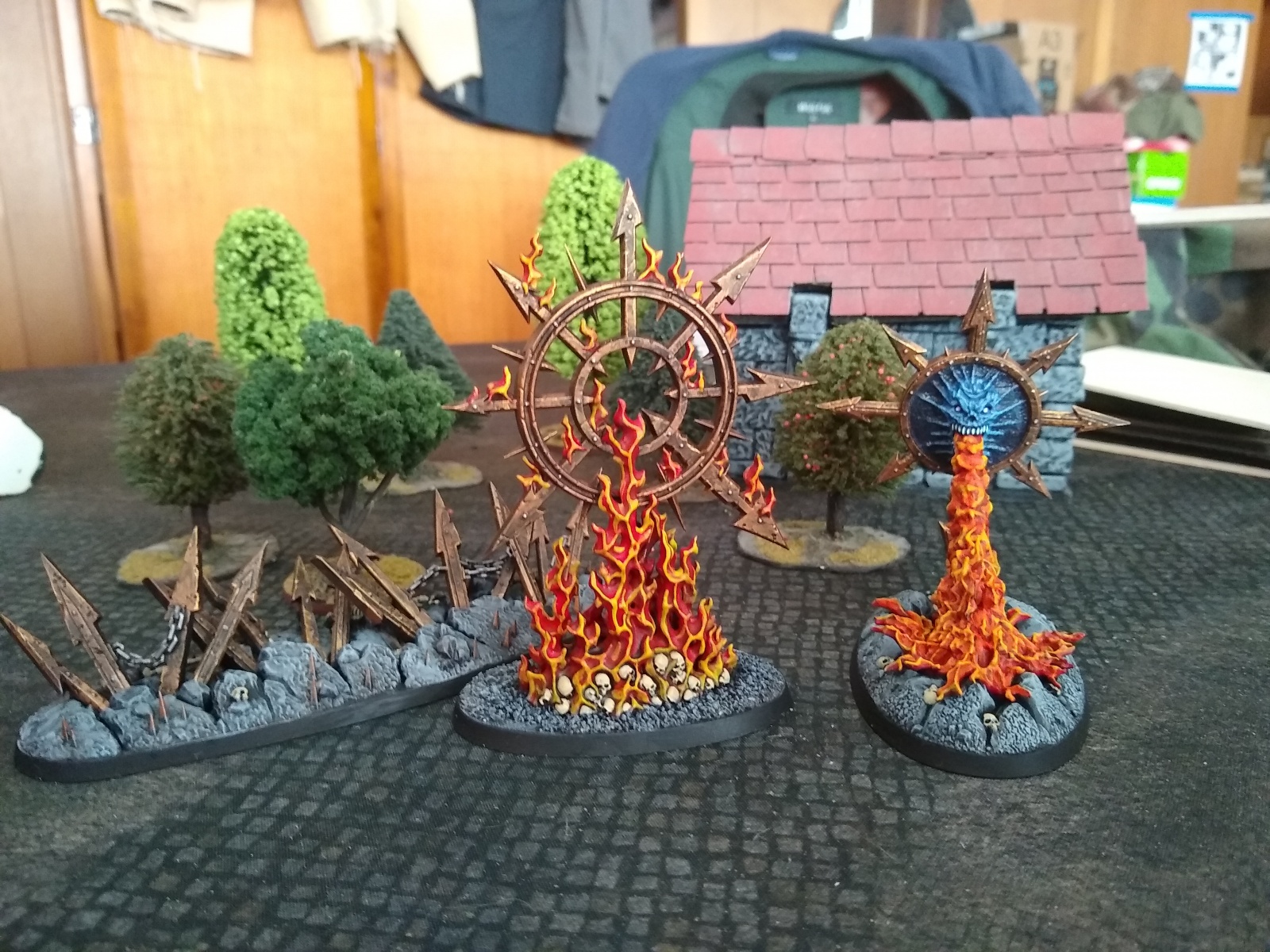 Finished painting up the Slaves to Darkness (in my case Slaves to Dorkness) Endless Spells. The Realmscourge Rupture, the Eightfold…